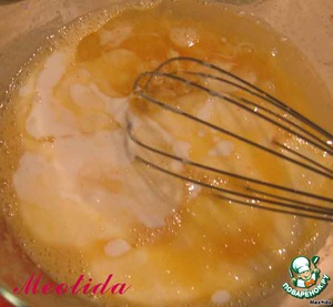 Коржи хорошо пропитываем коньяком, ликером или соком (я взяла апельсиновый)