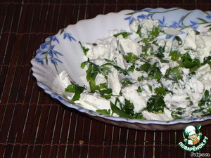 У петрушки удалить стебли, листья измельчить и растереть их вилкой в миске с сыром.