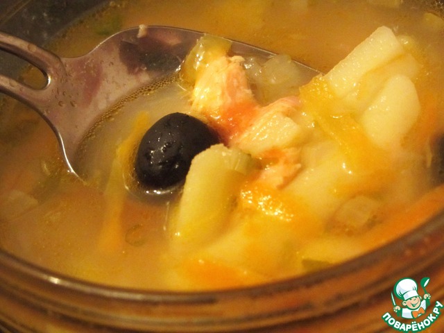 Лимоны и оливки нарезаем небольшими кусочками и отправляем в суп, когда картофель сварен до полуготовности.