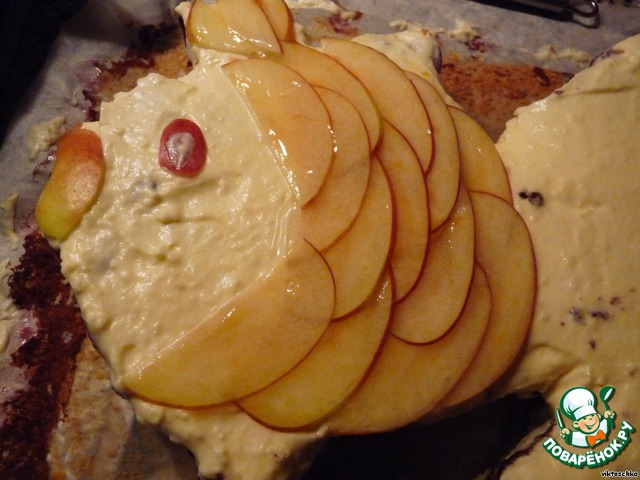 Осторожно распределить по светлому тесту.