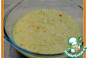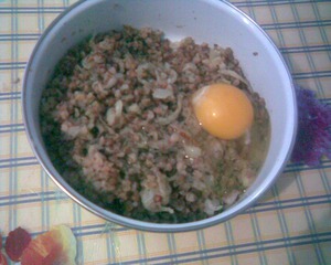 В горячую смесь гречки и лука добавить перец по вкусу и муку.