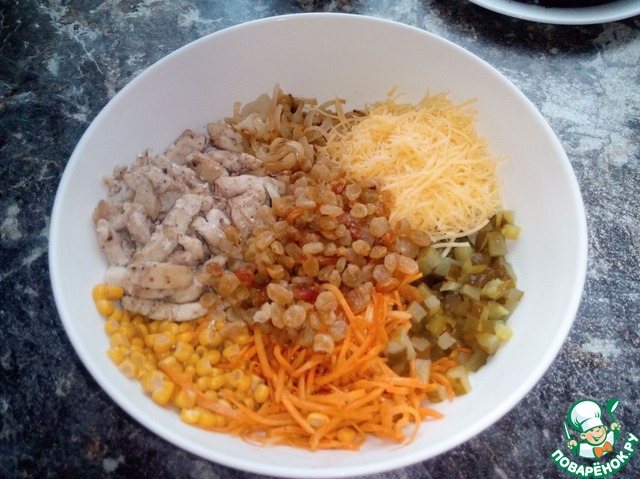 Мне повезло. Я попробовала этот салат в гостях. А ведь он мог пройти мимо... Потому как, прочитав ингредиенты, я навряд ли была бы столь отважной и решилась бы на приготовление.