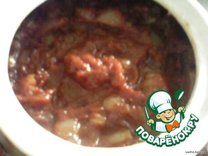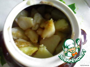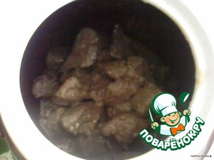 После этого сложить все продукты в горшочек, но обязательно в определенном порядке: