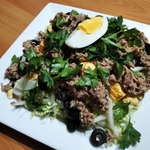 Есть у нас ресторан пива... Так и называется - "Пивной Сад", и в нем подают всякие вкусности, конечно же, к пиву. Вот и разобрала я этот салат на составляющие и теперь наслаждаюсь дома. И даже без пива идет на УРА!