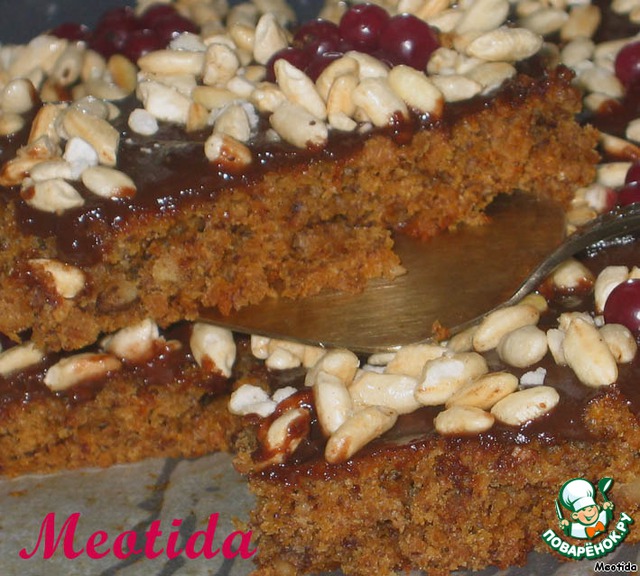 корж, не вынимая из противня, равномерно покрываем глазурью, посыпаем воздушным рисом