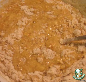 постепенно добавляем муку и разрыхлитель, все перемешиваем до однородного состояния