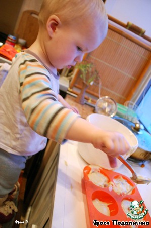 • Тесто ложками выложить в смазанные формочки