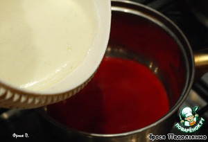 Клюквенно-апельсиновый сок нагреть на очень тихом огне, струйкой ввести яичную смесь.