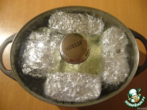 На дно кастрюли укладываем пироги, заливаем кипятком и варим 1 час.
