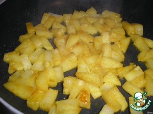 - На разогретой сковороде слегка обжариваем ананасы, добавляем карри и продолжаем обжаривать под крышкой на небольшом огне (если начнет пригорать, можно подлить немного сливок).