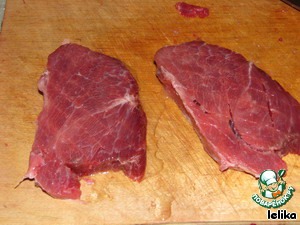 Берем мясо, делаем на нем диагональные надрезы, стараясь не прорезать насквозь ( примерно на 1/4 куска). Присаливаем и натираем растительным маслом, даем полежать минут 10.