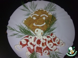 - Курица (вареная, у меня домашняя) — 1/2 шт