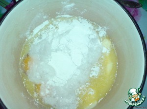 Все ингредиенты смешиваем (кроме муки). Взбиваем миксером