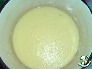 Добавляем муку (всыпать по немногу). Взбиваем миксером. Тесто как на оладьи.
