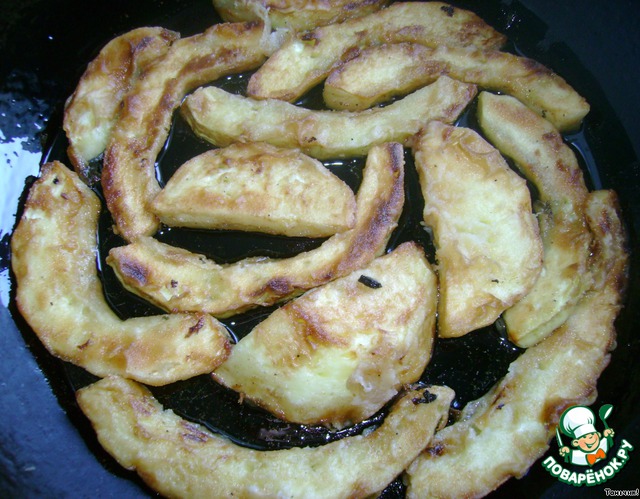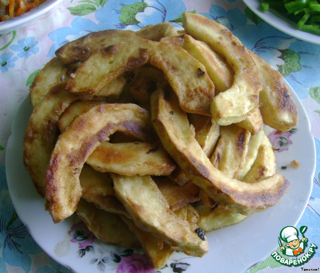 И отдельно обжариваем кабачок. Чуть запанировать в муке.