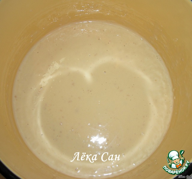 Замесить 100 г муки с дрожжами и теплым молоком. Дать подойти в течение нескольких часов.