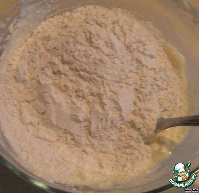 Постепенно добавляем муку и вымешиваем нежное, слегка липнущее к рукам тесто (больше муки добавлять не нужно, тогда коржи получатся нежными и воздушными)