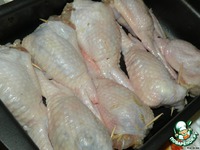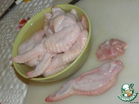 Теперь займемся курочкой.. аккуратно отделяем от косточки мяско со шкуркой, аккуратно выворачивая на изнанку, подрезаем жилки, средний суставчик удаляем вместе с косточками |
