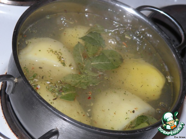 Сольем почти весь картофельный отвар и добавим молоко, масло сливочное - замешаем пюрешку [:-} [:-} [:-} лично я взбиваю миксером ее, т. к. люблю, когда она оооч нежненькая |