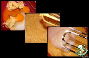 Взбить мягкий маргарин, сахар, ванильный сахар, ром, 1 целое яйцо и 2 желтка.