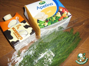 Фету и сливки взбиваем венчиком, добавляем укроп. -