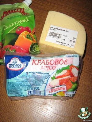Натираем крабовое мясо и сыр на тёрке, смешиваем с майонезом. -