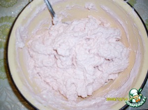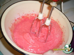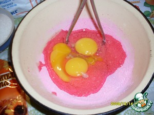 Кисельный концентрат (у меня был клюквенный) размять. Добавить яйца,