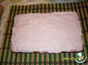 Коржи пропитать коньяком и смазать кремом.