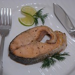 Подавать семгу с овощами, рисом, долькой лайма или лимона и соусом "Тар тар".