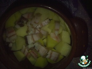 Рецепт «Картошка с салом и мясом в горшочке»: