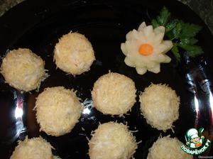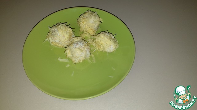 Из полученной массы формируем шарики, обваливаем их в сыре и ставим в холодильник часа на 2.