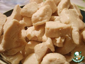 Слегка обжариваем нарезанную крупными кубиками индейку. Отложить на тарелку.