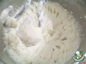 Делаем начинку. Немного взбиваем творог (если творог с комочками, его рекомендуется протирать через сито, я этого никогда не делала, просто всегда беру для таких целей более однородный творог).