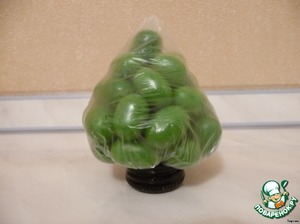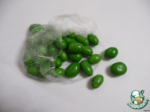 1. Конфеты зеленого цвета положить в прозрачный мешочек.