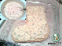 Тесто раскатать на смазанном противне, слегка помогая руками двигать тесто.