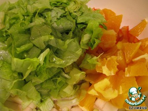 листья салата можно порвать руками (я ножницами порезала) -