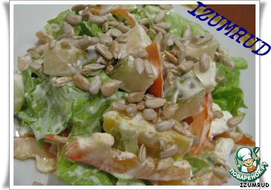 при подаче посыпать салат семечками (ядром) , но в идеале кедровыми орешками