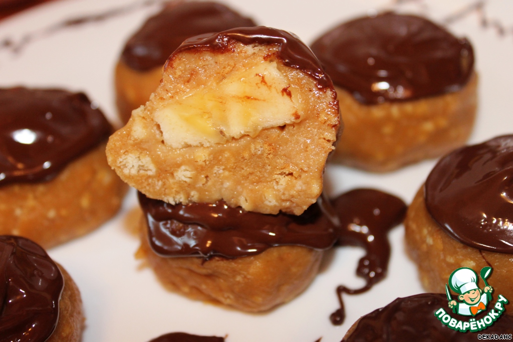 Из этой смеси сделать шарики. Бананы порезать кружочками и вложить в середину этих шариков.