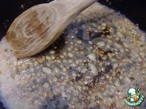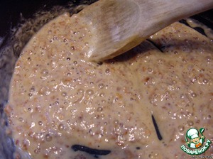 В кастрюльке (лучше всего с тефлоновым или силиконовым покрытием) поджариваем на сливочном масле очень мелко нарезанный лук до карамельного цвета.