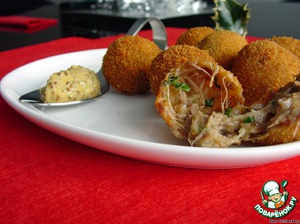 Подавать эти крокеты принято с горчицей и кушайте осторожно, рагу под хрустящей корочкой очень горячее!