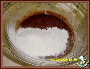 • Просеять сверху муку с разрыхлителем и аккуратно соединить с влажной смесью.