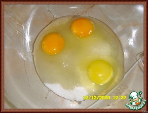 • В миксере 5 минут на высокой скорости взбить яйца с сахаром.