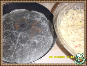 Выложить тесто и разровнять поверхность. Кекс печется в общей сложности 1,5-2 часа. |