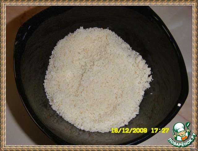 - Миндаль (молотый в тесто, бланшированный половинками - для украшения) — 30 г