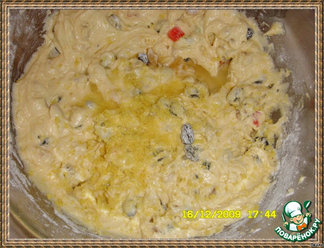 цедру и сок лимона. Все хорошо перемешать, чтобы фрукты равномерно распределились по всему тесту. |