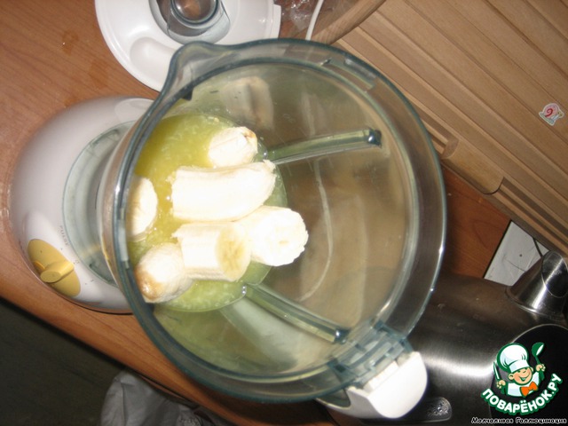 • Добавить произвольно нарезанные бананы. И только потом очищенную мякоть авокадо. Не забудьте вытащить косточку, а самое важное - добавляйте авокадо всегда в последнюю очередь, сок цитрусовых не даст ему потемнеть. Тогда ваш сорбет будет иметь нежный зелёный цвет :) Взбейте всё до однородной массы, довольно густой. Чтобы десерт получился более воздушным, если есть возможность, заморозьте его наполовину прямо в чаше блендера, а потом её раз взбейте. У меня такой возможности не было, поэтому я этот шаг пропустила. Просто перелила в плотно закрывающийся контейнер, и поставила в морозилку. Внимание: в процессе заморозки для равномерности необходимо каждые 15 минут отлучаться от дел и перемешивать эту массу вилкой. В зависимости от морозилки, процесс может занять от 1,5 до 2,5 часов.