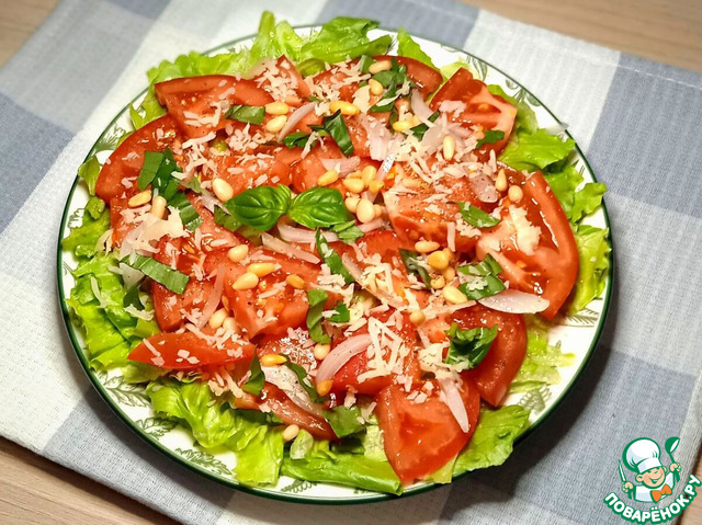 Рецепт «Свежий овощной салат с кедровыми орешками»: