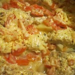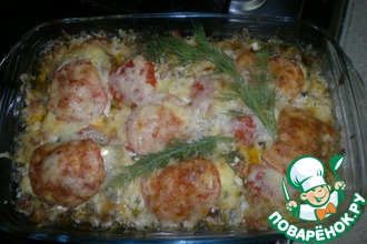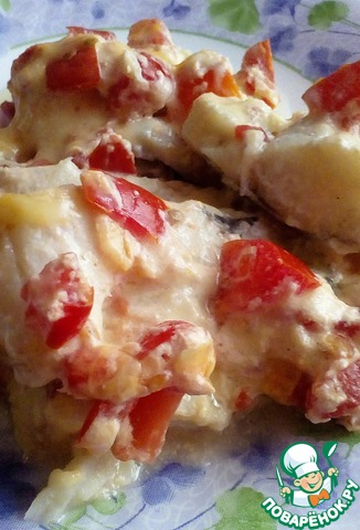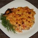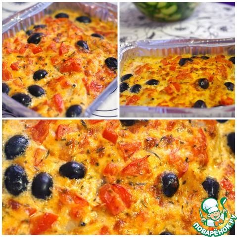 Выкладываем на рыбу нашу заправку. И ставим в разогретую духовку на 15-20 мин.