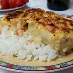 На гарнир я обычно делаю рис. В этом случае попробовала картофель, получилось очень вкусно. Кто любит острее, можно добавить больше чеснока.