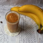 Свежие бананы и яблоко. Добавила растворимый кофе. Вместо молока налила